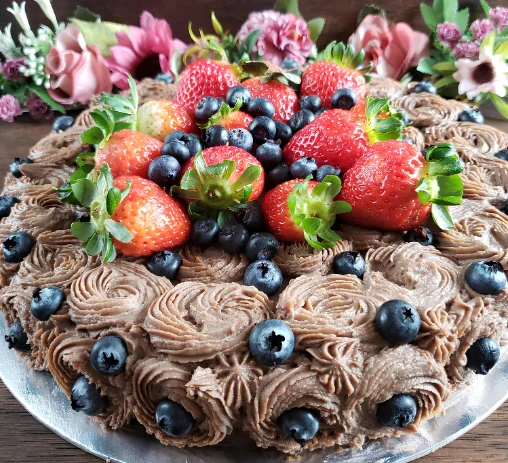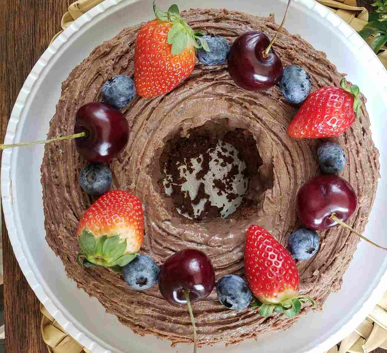 Bolo de Chocolate Funcional com Frutas Vermelhas - Sem Açúcar, Glúten e Lactose